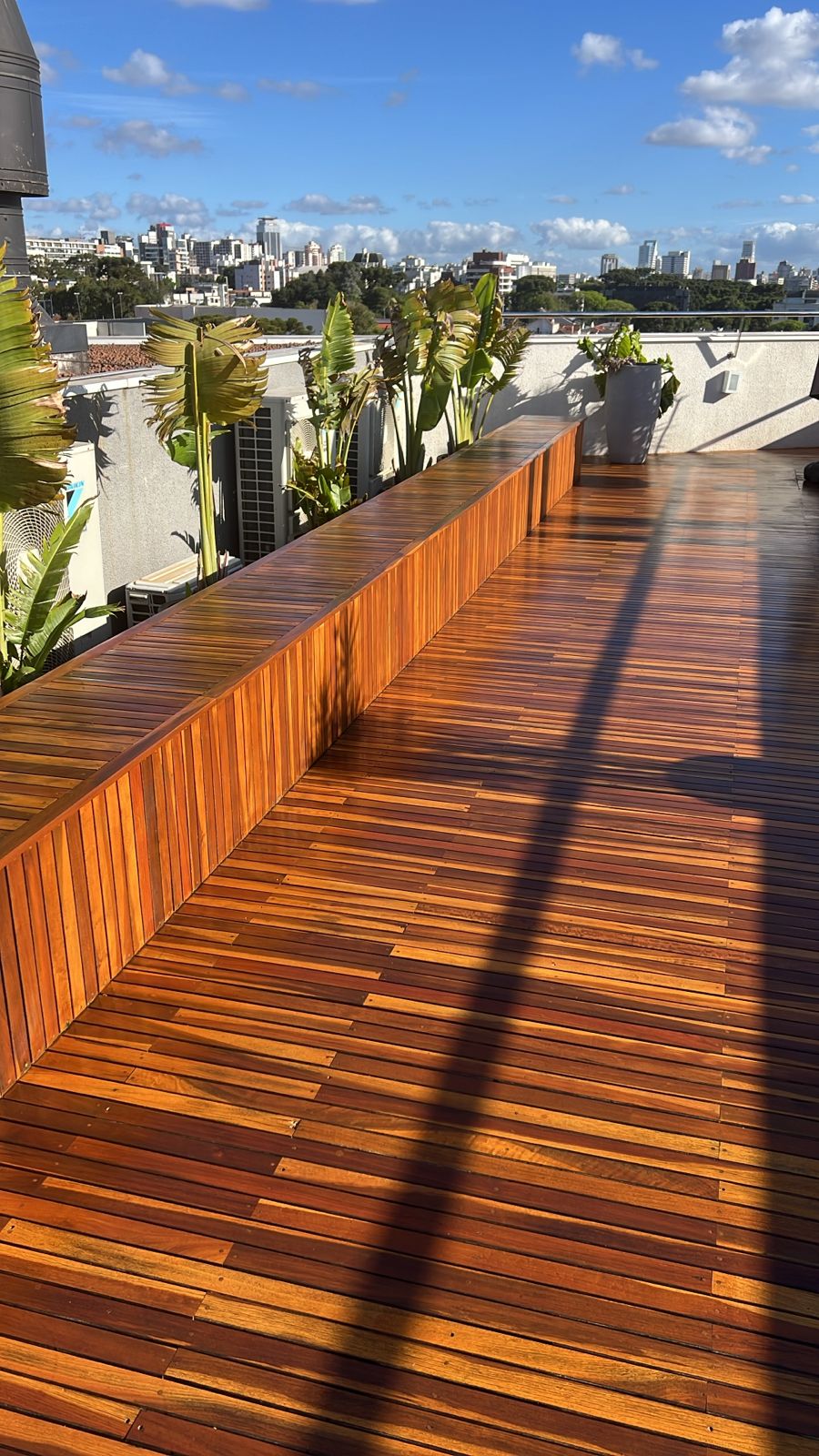 Muito usado em áreas externas, para espaços de piscina ou incrementando o caminho da entrada ou o jardim, os decks de madeira podem ir além disso e emprestar seu charme, conforto e beleza a outros espaços da casa também. Este produto desafia sua criatividade, podendo levar a estrutura para banheiros, quartos e até para as paredes da casa.